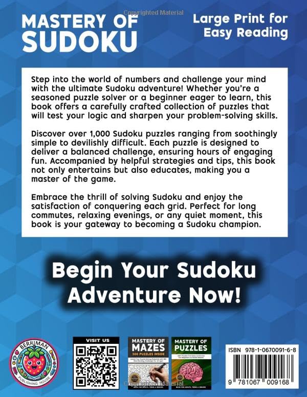 Discover a thoughtfully designed Sudoku book created for adults, teens, and seniors who value clarity, challenge, and quality. Mastery of Sudoku Puzzles for Adults offers a complete and rewarding puzzle journey, bringing together over 1,000 carefully balanced Sudoku puzzles in one substantial volume.