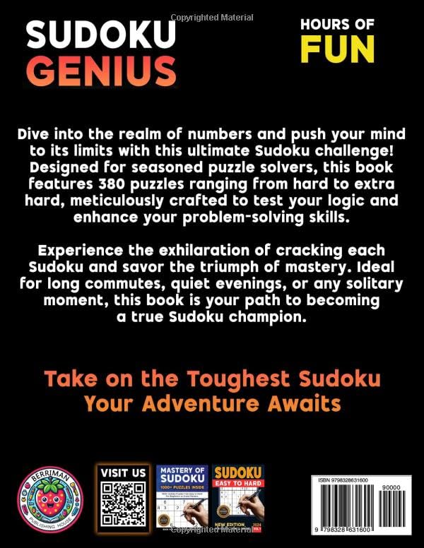 With 380+ hard to extra hard puzzles, this volume is ideal for experienced players who prefer fewer gimmicks and more pure problem solving. Every page is clean, clear, and designed to keep you in the zone from the first pencil mark to the final digit.
